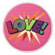 Pop Art i KÄRLEK Roligt Retro Tecknad Bok Knopp