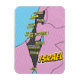 En stiliserad karta av Israel i en popkonst stil, med en svart kontur av land på en rosa och blå prickad bakgrund. Karta är märkt med storstäder och platser i gulter, inklusive Jerusalem, Tel Aviv, Beersheba och Eilat.