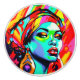 En häpnadsväckande popkonst porträtt av en självsäker kvinna i ett dynamiskt, mönstrat hörlslag och fet örhängen. Den här Afrocentriska konsten exploderar med färg, stil och personlighet - blandning av kulturuttryck med modern digital konst. Perfekt för mode älskare, påstående-dekanor och contemporary konstentusiaster. Perfekt för väggkonst, kläder och reservtillbehör.