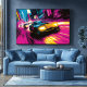 Denna dynamiska popkonst-design av en tävlingsbil fångar spänningen av höghastighetsaction i ett neonljus stadslandskap. Med livfulla färger, strömlinjeformade bilar och en fartfylld urban atmosfär är detta konstverk perfekt för bilentusiaster, racingfans och de som älskar energisk konst. Anpassa registreringsskylten med ditt namn eller en speciell fras för att göra den verkligen unik! Tillgänglig i flera storlekar kommer detta konstverk att tillföra spänning och en modern popkonst-känsla till alla utrymmen.
