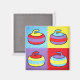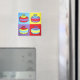 A playful celebration of color, texture, and repetition, this design presents a quartet of stylized curling stones rendered in a bold, painterly pop-art style. Each stone sits within its own vibrant color field, swapping hues and combinations to create a rhythmic visual variation that feels both cohesive and dynamic. The thick, hand-drawn outlines and visible brush-like textures give the forms a tactile, almost folk-art warmth, while the simplified shapes and high-contrast palette lend a modern, graphic punch. The result is a lively, whimsical composition that captures the spirit of curling through a lens of cheerful abstraction and expressive color.