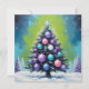 Syntetvågsdesign av Julgran som kombinerar syrad grönt, violett och indigo som primärt färg. Jul är ett underbart sätt att påminna nära och kära om att du tänker på dem den här Julhelgen. Färg på snöflingor inuti kortet kan ändras.