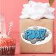 Den här tecknaden stil Poof! är perfekt för vilken toppen hjälte som helst eller fläkt pojke. Den skarpa grafiken har hård linjer och fetstil i färgerna.