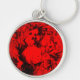 Pop Musician Porträtt i Vibrant Red Färg Art Rund Silverfärgad Nyckelring