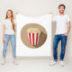 Popcorn i ett klassiskt rött och vitt strimlat rör med en brun cirkelbakgrund. Popcorn ser jättebra ut att ätas när man tittar på en film. Det kan vara en bra design till användan på din filt, särskilt om du gillar popcorn också!