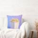 Popcorn i ett vitt rör med lila och blå bakgrund. Det ser jättebra ut att ätas som en munk när man tittar på en film. Det kan vara en bra design till användan på kudden, särskilt om man också gillar popcorn!