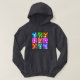 This hoodie is much better than I expected. top quality, true sizing, and really comfy. I was a bit worried that the lettering would be too dark on the navy blue hoodie, but once it arrived it was perfect. Easy to see the words, and the quality of the wording is fabulous. I will be buying more hoodies in future