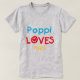 Poppi Kärlek Me T-shirts, kort, klistermärken, kokokocksväskor och annat med färgstarkt rött, gult och blå text och hjärtdesign. Poppi Kärlek, mina kläder och presentartiklar gör poppi-leende!
