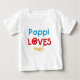 Poppi Kärlek Me T-shirts, kort, klistermärken, kokokocksväskor och annat med färgstarkt rött, gult och blå text och hjärtdesign. Poppi Kärlek, mina kläder och presentartiklar gör poppi-leende!