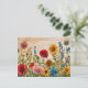 Poppies and Wildflowers on Soft Rustic Wood Vykort