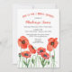 En underbar vattenfärg inbjudningskort för möhippan med orange och röda vallmo på vit bakgrund.