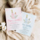 Inbjudan till Genderna för att visa babyskor i julgran. Designad med julens rosa och blå prydnadsföremål. Matchande objekt i vår butik Cava Party Design.