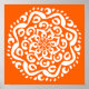 Den här vita mandala sitter på en ljus, vallmoisk orange. Färg är ljust och kreativ. Del av Kylgh Mandala-samlingen. Den här designen kanske inte skrivs ut så ljust som den ser ut som online.