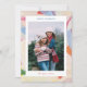 A painterly background in neutral tones, with pops of holiday colors, creates an artsy frame for this single photo holiday card.