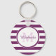 En populär, stark lila och en vit, strippad nyckelkedja för mönster. Anpassa det här snurra mönster genom att lägga till ditt namn och initiera monogrammet. Denna klassmonogramdesign ingår i den Magenta Lila Trinkets Summer Färg Collection.