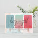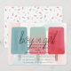 Den här söta och moderna genderna " pojke eller flicka" visar att babyduschen per e-postinbjudan har en rosa och blå vattenfärgad bakgrund med popsikler i blått, grönt och rosa samt rosa. Baksidan har en vit bakgrund med sprinkler i pastelliserad färg. Anpassa efter dina behov. Du hittar fler matchande produkter i min butik.