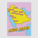 Saudiarabiens synligt slående karta är en sammansmältning av geografi och popkonst. Fet färg, ikonbilder och lekfull typografisk kom tillsammans för att skapa ett unikt och fängslande biet.