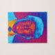 Vibrant färger av blått, orange och rosa framhäver denna popkonsgrafik av president Donald J. Trump.
