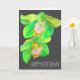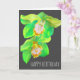 Sacha Grossels moderna vattenfärgskonst av blommigt av en orkidé med formgivning av citron och kalk citrus färg. Modern och färglös konst med födelsedag hälsning