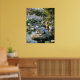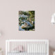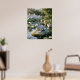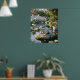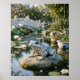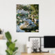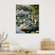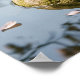 A charming porcelain frog rests elegantly beside a tranquil lotus pond, crafted with glossy ceramic glaze, delicate blue-and-white floral motifs, subtle crackle texture, and refined sculptural curves. Bright expressive eyes and polished highlights give this whimsical amphibian a collectible handcrafted feel. Surrounded by lily pads, koi reflections, bamboo, pale stone bridges, blossoms, and warm morning sunlight, the scene feels peaceful and inviting. Perfect for spa décor, spring interiors, cottage spaces, nursery walls, and gift shoppers who love playful premium art.