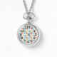 Denna kvinnoklocka har en modern utformning av halvsekelcirklar med linjer bakom sig i orange, gult, turkos och grönt.