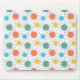 Den här musmattan har en modern utformning av halvsekelcirklar med linjer bakom sig i orange, gult, turkos och grönt.
