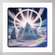 En brinnande vinterscen med ett stort berg täckt av snö som bantas i strålande ljus, inramad av en lysande cirkulär portal. Landskapet gränsar till snö-lastade gräs träd och skapar en känsla av tolerans och .