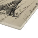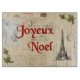 Eiffel Torn i Paris, vintage bild av holly en vintage fleur de lis och ord Joyeux Noel (God jul) står mot en underbar och intressant bakgrund av gamla vykort av Fransk med handstil, gammal frimärke och poststämpel, för att göra denna söt Fransk till ett tema för julglasskärande.