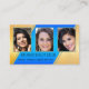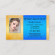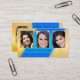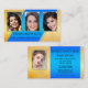 Ett modernt affärskort med fyra foton som du kan välja mellan (valfritt) och som har en turkosblå och guld-konstnärlig design. Ett vackert affärskort för en skönare eller någon som vill presentera en portfölj.