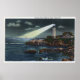 Portland, Maine - Portland Head Lighthouse på natten på Casco Bay View - Portland, ME skapades 1941. Den här bilden visar scener från Portland, ME.