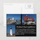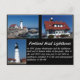 Det här vykortet innehåller tre olika foton av Portland Head Lighthouse. Det ena är en stängning av det gamla djurhållarhuset med toppen av torn i sikte ovanför det. Den andra är en bild från kusten-linjen som tittar mot fyr-komplexet. Det tredje är ett stängt skott mot torn. Detta är det mest fotograferade fyren i Maine. GPS-koordinaterna skrivs ut på baksidan.