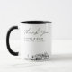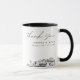 Modern Portland-skyline kaffemugg favörgåva med "tack"-text. Designen visar en fantastisk skiss med möjlighet att anpassa era namn och exakta plats. Gå in i Zazzles designverktyg för ytterligare anpassningar.