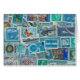 För frimärkeälskare och samlarear skryter denna design blåttfrimärken från värld runt.