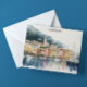 Fin Portofino Italien Vattenfärgsfärgning på vykort med den unika berömden och landskapet på kursivt resmål. Fungerar underbart som en presentidé för alla turister. Köp nu.