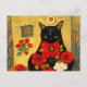 Porträt einer schwarzen Katze im Jugendstil Design Vykort