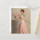 Porträtt av en dam i rosa som bär en skål med rosa nejlikor av John Collier presenterar en förfinad och elegant skildring av en kvinna i ömtåliga rosa nyanser. Kvinnan, iklädd en flytande rosa klänning, bär en skål fylld med mjuka rosa nejlikor, som symboliserar grace, beundran och femininitet. Collier, känd för sin mästerliga användning av realism och mjuk belysning, fångar de ömtåliga texturerna hos både tyg och blommor med utsökt detaljrikedom. Målningen utstrålar en känsla av tyst värdighet och förfinad skönhet, karakteristisk för hans porträttstil.