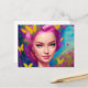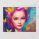 Den här digitala målningen är en nära porträtt av en vacker kvinna med skarp rosa och hår. Hennes hårstil är oskadd och hennes ögonfransar...