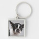 Porträtt av hunden fyrkantig silverfärgad nyckelring