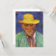 Porträtt av Patience Escalier, herde i Provence av Vincent van Gogh är en vintage fin konst post-impressionism vardagsliv porträttmålning som visar en gammal man, en lokal bonde från Provence i södra Frankrike. Den här äldre herren har skägg och mustasch och bär en gul halmhatt, kostym och slips mot en vacker klarblå bakgrund.