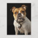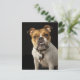 Porträtt av tjock och vit tjurhund med hals vykort