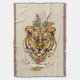 Denna design presenterar ett porträtt för bohostilvattenfärg av blommor och fjädrar för en tiger iklädda.