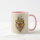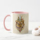 Denna design presenterar ett porträtt för bohostilvattenfärg av blommor och fjädrar för en tiger iklädda.