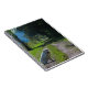Porträtt i en gyllene hämtare sitta ner anteckningsbok med spiral