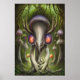 En porträtt av en svamputlänning i svampskogen. Det här är en AI-skapad konst.