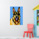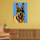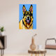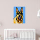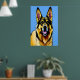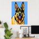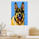 Porträtt av en söt och förtjusande tysk Shepherd på blå bakgrund. Det här är en AI-skapad konst.