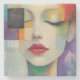 Denna fantastiska abstrakt porträtt av en kvinna blandar surrealism med vibrerande färg-blockteknik. Hennes serenuttryck, slutna ögon och fet rött läppar är inramade av en blandning av geometriska former och painterly struktur. En modern, avantgardistisk design som tillför ett litet stycke modern elegans.