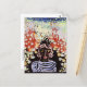 Ett vykort för konst-abstrakt med målningen av Paul Klee (1879-1940) med titeln, Porträtt i Garden (1930). Upprättat i gouache och pappert på ett bord. En tysk expressionist som är född i Schweiz tillhörde den grupp konstnärer som heter Der Blaue Reiter (blå Rider). En surreal porträtt av en person på svart bakgrund.