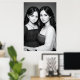 En svart och vit porträtt av mor och dotter med långt svart hår där både vita och svarta kläder bär. Det här är en AI-skapad konst.