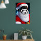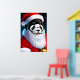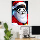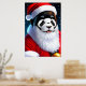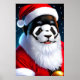 Ett porträtt i lycklig och coola Panda Jultomten med ett vitt skägg och en röd och vit julhatt på huvudet. Det här är en AI-skapad konst.