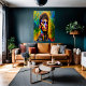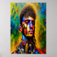 En färgstark porträtt av ett fast ämne i en unik uniform med en färgstark bakgrund. Det här är en AI-skapad konst.